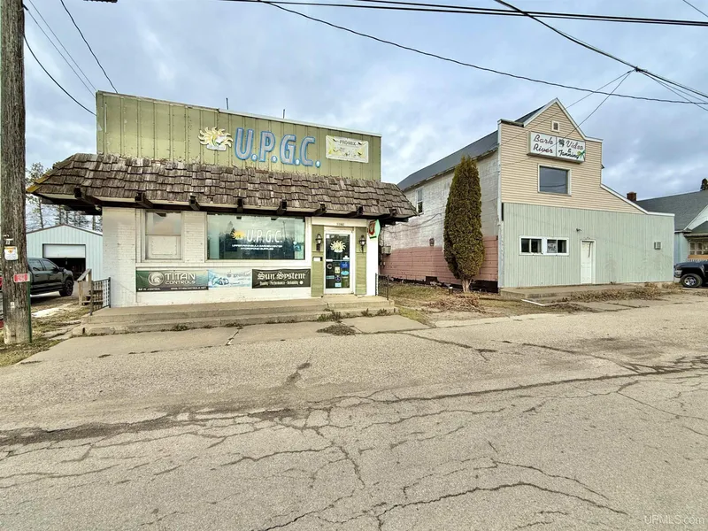 Package deal with two Commercial Buildings, plus a newer garage right in downtown Bark River! 1284 offers approximately 1,917 sq' of floor space, as well as a partial basement. This building was most recently used as garden supply center, but was originally a lending institute and still has two original vaults present. Updated breaker panels, HVAC, and central air unit give this structure added value. 1288 offers approximately 3,240 sq' with the commercial lower, and the apartment above combined. The main floor of this building has significant damage to the floor system due to a lower roof leak, but the upper portion appears to have great potential. Both properties share a private drilled well for a water source, and have municipal sewer. Outside, a 20x24 pole building provides great storage with a concrete floor, 12' side walls, and a complete spray foamed interior.