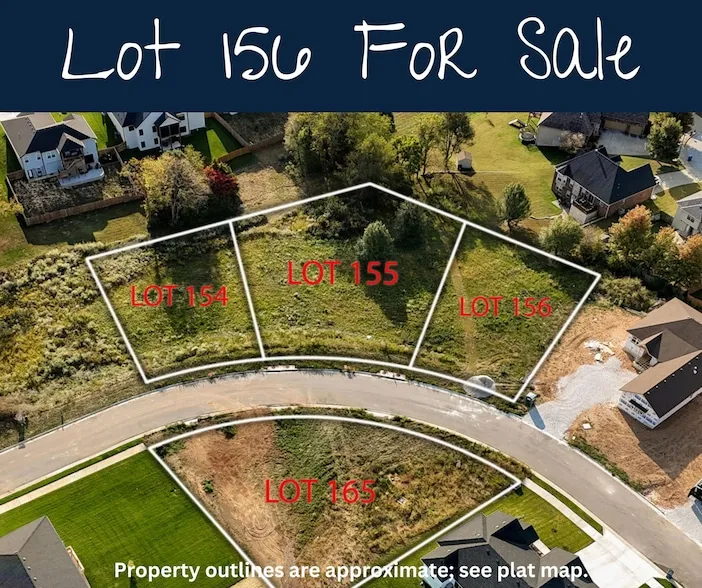 Lot 156 is a Basement Lot - Boundary lines shown are approximate and for visual reference only. Please refer to the official plat map for exact lot measurements and details. Only a couple of lots remaining located in Creek Bridge Phase V! Are you ready to build your dream home in a great Ozark neighborhood? Phase V has a beautiful country setting, just minutes to the heart of Ozark with restaurants, shops, walking trails and the Finley River. Easy access to Hwy 65 approximately 10 minutes to Springfield and 25 minutes to Branson. Ozark school district (Ozark West Elementary, Ozark Middle and Ozark High School). Underground utilities.