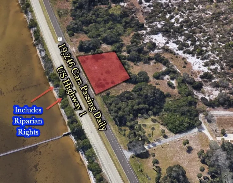 This property includes riparian rights to the river on the east side of US Highway 1.