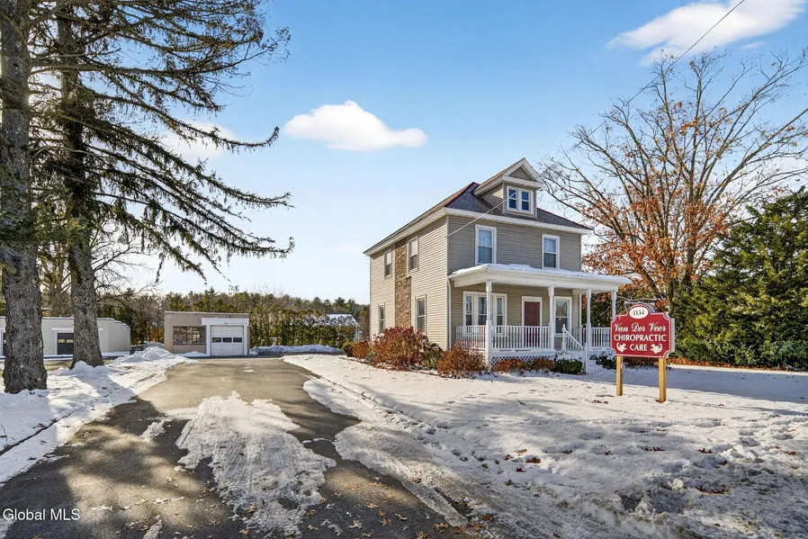 Here is your opportunity to own a premium office building that has served a prominent and, respected chiropractor for over 30 years. Perfectly positioned along the highly sought-after Troy-Schenectady Road corridor in the heart of Latham, this location is truly unbeatable-directly across from the new Keeler Honda facility with exceptional visibility and a daily traffic count exceeding 50,000 cars. The property offers parking for 12 vehicles in the rear, plus a large 2-car garage with power for additional storage or workspace. This two-story building features a welcoming first-floor reception area and waiting room, along with full bathrooms on both levels and up to eight private office spaces across the two floors. The dry basement provides even more utility, and all major mechanicals have been updated for peace of mind. A charming slate roof adds curb appeal and character. The property adjoins Faddegon's Nursery, sits within the Niskayuna School District, and benefits from Colonie property taxes-a rare combination of advantages.
