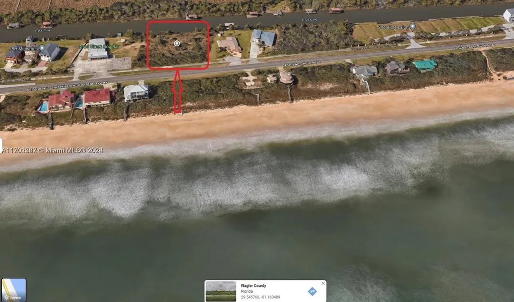 A BEAUTIFUL PARCEL ON A1A IN FLAGLER COUNTY ACROSS THE ROAD IS THE ATLANTIC OCEAN AND THE BACK OF THIS PROPERTY IS A WATERWAY LOCALS CALL FOX CUT WHICH LEADS TO ST JOHNS INLET, THE PROPERTY ZONED SINGLE FAMILY RECIDENCE AND COMMERCIAL. LANDLORD WOULD CONSIDER TO LEASE OUT THIS PROPERTY WHICH COULD BE USED FOR PARKING (RV'S), RESTAURANTS, BANKS, FRANCHISES ETC. WATER, SEWER AND ELECTRICITY IS ALRADY IN PLACE