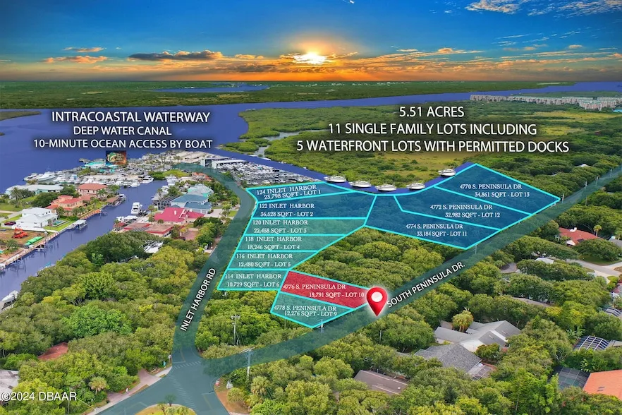 Build your dream home in the highly desirable Inlet Harbor Estates Subdivision of historic Ponce Inlet, Florida! This is rare opportunity to purchase a spectacular, development-ready lot near the historic Ponce Inlet Lighthouse. This property has utilities available on-site and a 35' height allowance to take advantage of the stunning Intracoastal views and sunsets. Whether you love swimming, surfing, boating, fishing, golf, tennis, or sunbathing, this location is perfect for enjoying the Florida coastal lifestyle to the fullest! Live steps from the beautiful white-sand beach and the world-class surf break and dog beach at Jetty Park. Launch your paddle-boards at one of several Intracoastal access points nearby and watch the dolphins frolic in the inlet at sunset! Inlet Harbor Marina is right next door, offering charter fishing excursions and accommodations for both small watercraft and large yachts, as well as a fuel station, electric and water hookups, bait shop, and dry-dock storage. Visit Marine Discovery Center to learn about local marine life or explore the beautiful local ecosystem along nearby nature trails. Choose from several charming waterfront restaurants serving fresh seafood and delicious local cuisine, or venture to the surrounding communities for ample dining, shopping, and entertainment opportunities. This is truly the perfect location to build your forever home amid some of the most spectacular amenities coastal Volusia County has to offer!