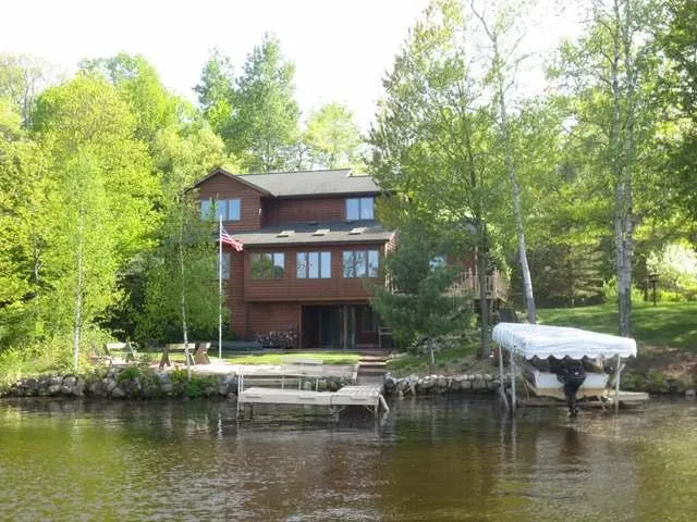 Looking for that lake home where the neighborhood reflects the essence and pride in ownership? Look no further! Situated on the very popular Rhinelander Chain and at the end of a no thru road sits a 4 bedroom, 4 bath cedar/brick sided home with spectacular lake views. The main floor offers a master bedroom with suite, living room with hardwood flooring, gas fireplace and cathedral ceilings, kitchen with granite counter tops, large dining area, main floor laundry and a 1/2 bath. Off the master bedroom is a sunroom with hot tub, skylights and leads out to the lakeside deck. Upper level has 3 bedrooms with extra large closets and a full bath. The lower level has a lakeside family room, large office/bonus room, full bath, workshop and extra storage. The grounds have been landscaped offering a park-like setting with a paved stone patio and fire pit area, sandy beach, rock retaining walls and a pier. Living on the lake doesn't get any better than this!