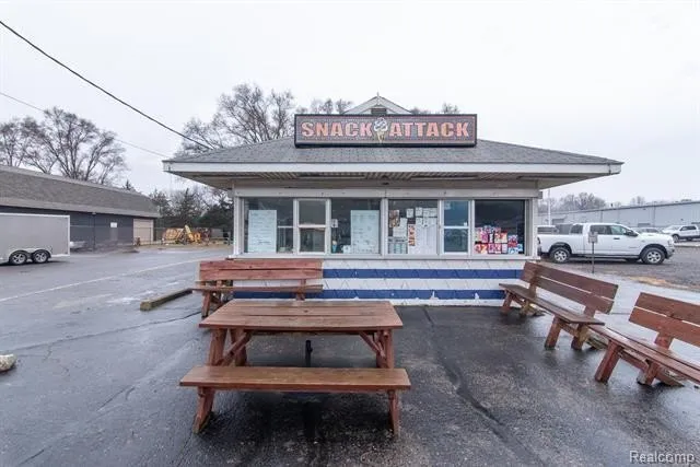 Welcome to Snack Attack! This is a business and property for sale. The building is 720 sqft and includes a half bathroom, walk-in fridge, newer hot water tank, 2 free-standing freezers, and 4 take-out windows. It operates year-round and currently generates an annual profit averaging 20K. The property features a 16+ spot parking lot, a storage shed toward the back of the parking lot, as well as several picnic tables and benches for customers to use. It enjoys great visibility with an average daily traffic count of 25,130 vehicles. Parcel ID 1113354011 is included in the sale. BTVAI