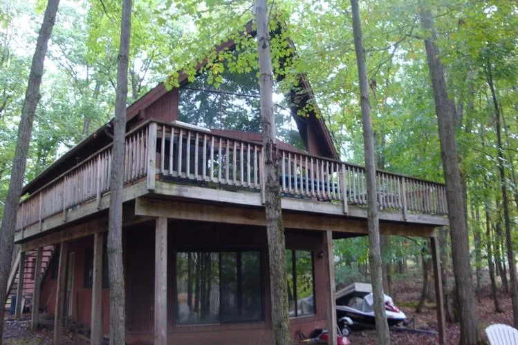 This spacious glass front chalet facing state lands has it all, from the beach on Lake Wallenpaupack to the country club and golf course, to the many trails of state land. Features 4 bedrooms, 3 baths, 2 fireplaces, cathedral ceilings and large deck. Prime location at a realistic price!