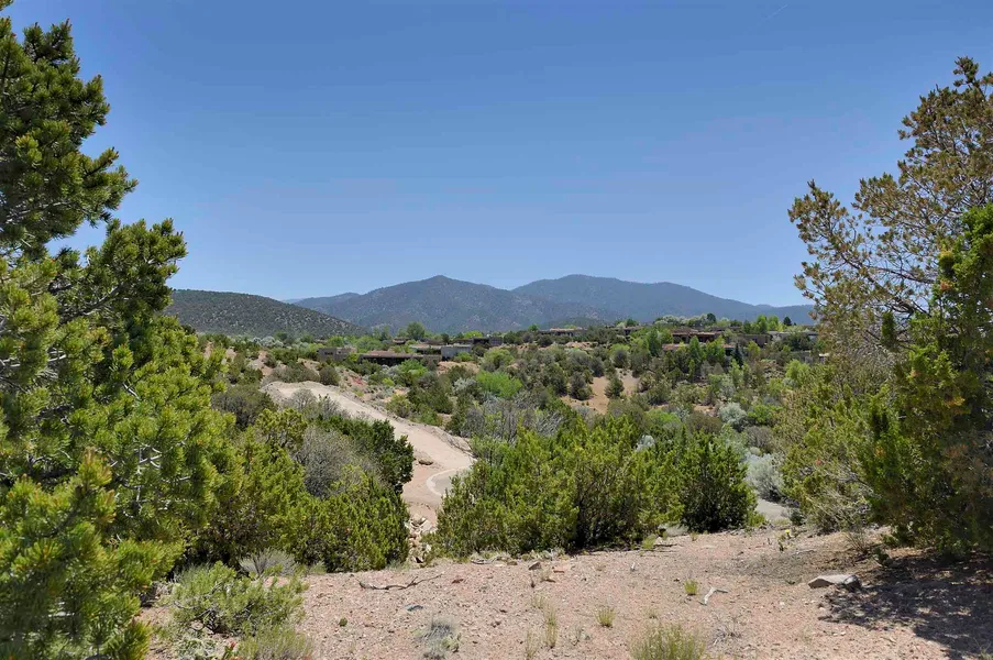 Build your new Santa Fe home among the rolling hills and pinon and juniper trees on the Historic Eastside above the City Different. This 0.460 acre corner lot is part of the all adobe El Cerro Moreno compound off East Palace Avenue, a gated community with paved access. Beautifully landscaped with a low brick wall and bench along the street. Enjoy the privacy and the sweeping views of the surrounding foothills and Sangre de Cristo mountains. City utilities are available for all Cerro Moreno properties. Located close to Canyon Road galleries and the Santa Fe Plaza, yet feels like a world away from the city. Now allowing adobe and ICF construction.