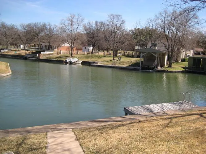 LAKE LBJ WATERFRONT HOME on 100' of cove waterfront which is only a few yards to open water. This 3 bedroom, 2 bath brick home is located in a popular restricted neighborhood with easy access to Austin and San Antonio. The home has a large living/dining area with brick fireplace and a extra large master bedroom suite. The lawn can be easily maintained with a sprinkler system and lake pump. Nice water view from most rooms. Great area, good price and good water.