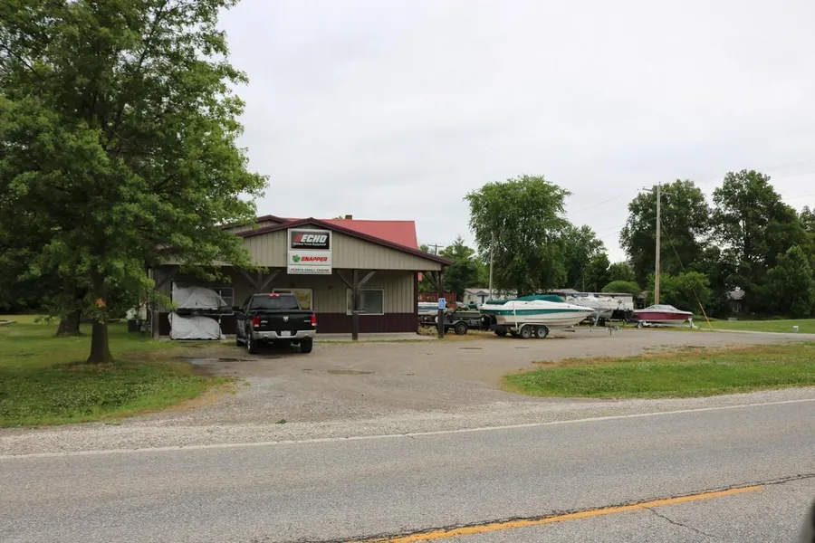 Established business: boat, marine repair, small engine repair and new mower sales. 2 lots (total of 133 x 117) for sale with 40 x 60 building. Building has 20 x 60 showroom and office and 40 x 40 shop with two 12 x 12 insulated overhead doors and 16-foot ceilings. Catalytic heat system in shop. Central heat and air in showroom/office. Restroom in shop. 10-foot covered porch on front. Large concrete apron on east side of shop.