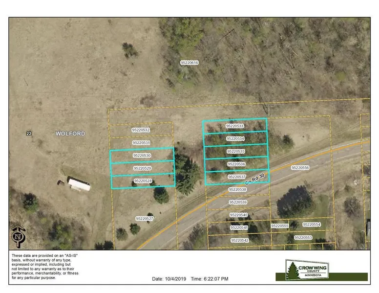 8 total lots, each 25 x 125 for a total area of just over .5 acres, adjacent with a right of way between. Direct access to County Rd 30 just north of Crosby, and easy access to Island Lake! Perfect for a small cabin/home.