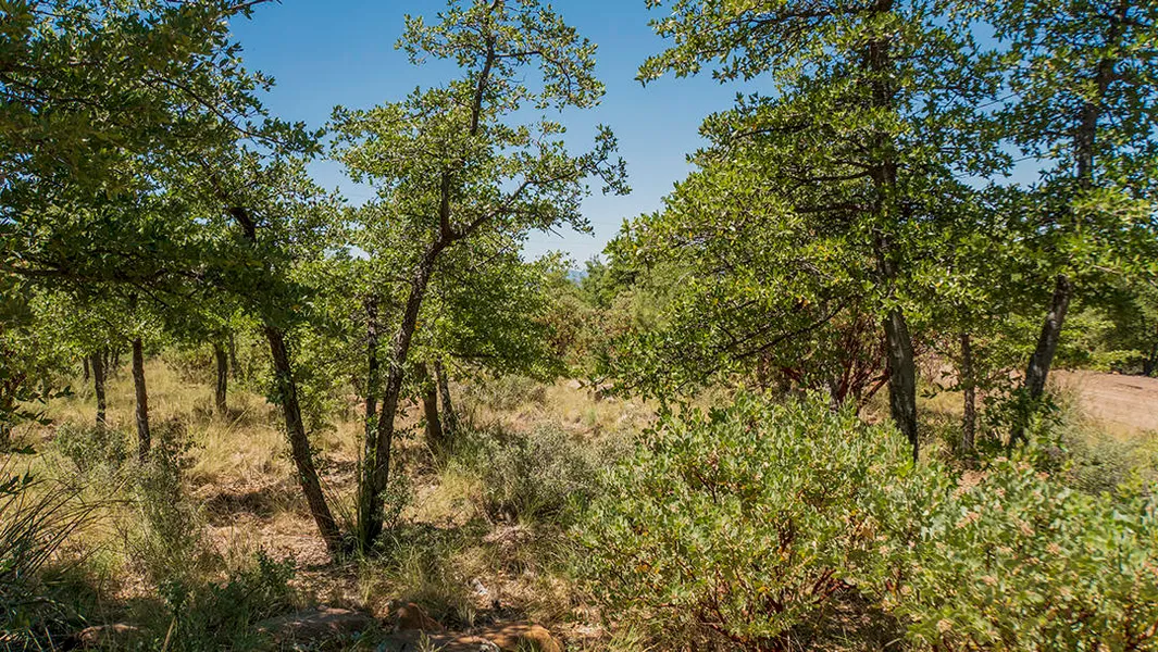 PANORAMIC VIEW! Level 1/2 acre corner lot with unobstructed mountain and national forest views off Hoot Owl Trail, which borders national forest. Private water company and electric available. Great hiking and lots of area to explore the Arizona wilderness. Original house burned down in the 1990 Dude Fire. Original septic system on the property; functionality unknown, owner has limited knowledge and will test.