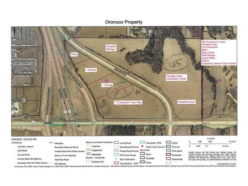 Future Commercial building sites---Hwy 52 Frontage, easy on/off. Traffic count is 200,004 per week. 2+ acres minimum. (Additional 45 Acres are also available. Additional acres PID: 842014079443) Sewer and Water available. The price will depend on infrastructure, location of subject lot, number of acres over 2 min, etc. Taxes TBD. Call today for information about this fantastic opportunity.