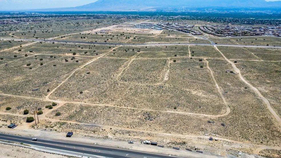 Research Parcel InformationFrom Montano North on Unser up and over the escarpment to second traffic light at Rainbow/Compass. Left on Rainbow to first traffic light at Compass/Scenic. Right on Compass heading North to School property fence on left. Continue North just past locked school gate, The rear of property is across the road with sign. Alfanje St runs parallel with Compass.
