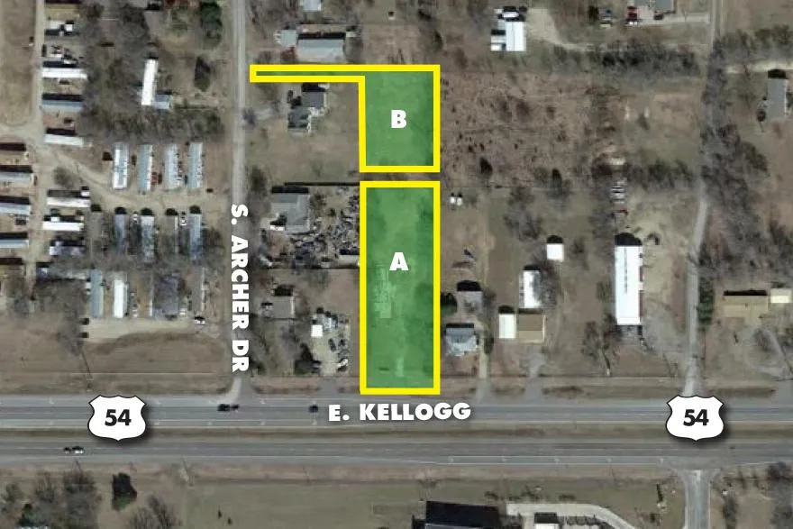 Auctions held off-site at the Benton Community Building (150 S. Main St, Benton, KS). | Online bidding available. | Order of Auction: 7 commercial lots in Benton, immediately followed by 2 undeveloped lots in Andover.