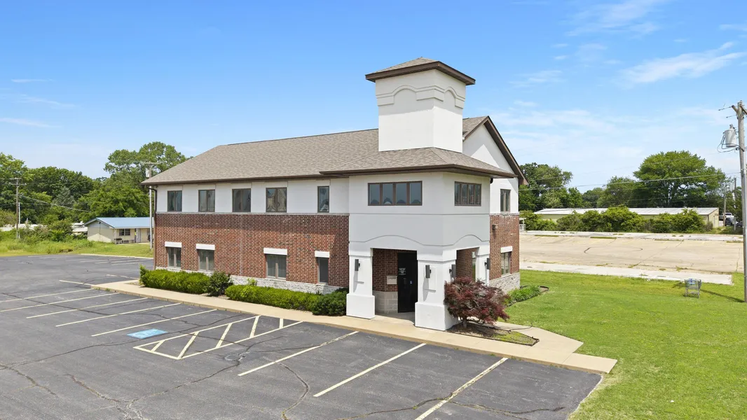 Inside, you'll find 12 private offices (plus a large open training area upstairs), a dedicated conference room, two kitchenettes, two restrooms, and a dry bar refreshment area for clients. Matching desks in each office and coordinating conference furniture convey. Light gray polished tile flooring runs throughout the main level, while plush carpet adds comfort upstairs. Ample closet storage and 23 parking spaces add functionality to this upscale property. This is the perfect setting for any business looking to thrive in a professional, high-end environment with beautiful lake views.