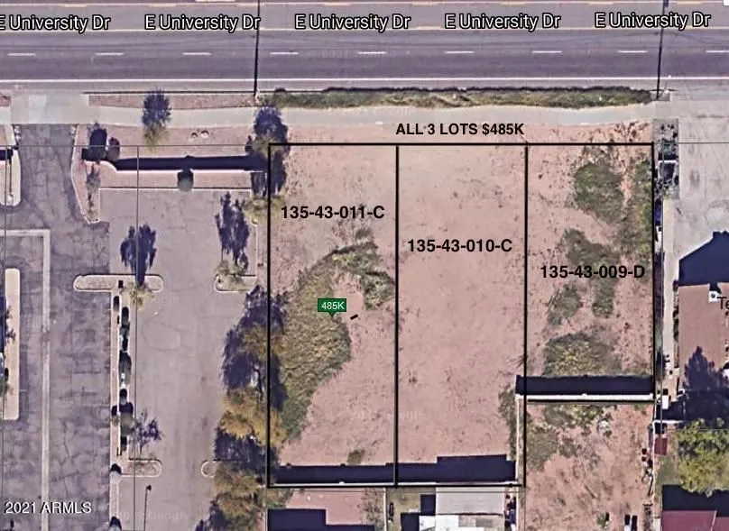 Calling all Builders and Investors! Rare opportunity in Tempe. 2443, 2447, 2501 E University Dr. These 3 lots total 25,977 SqFt and are sold together. All lots are currently zoned R2 MultiFamily Residential. Build 3 single family homes, 3 duplexes or single building (5-6 units). Confirm with Tempe City Planning and Development. Minutes from ASU and Tempe Market Place. Easy access to loop 101, loop 202 and US 60.
