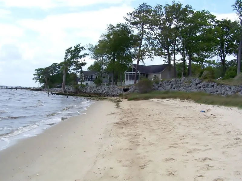 Riverfront building lot with sandy beach and majestic miles wide views across the scenic Neuse River. A rare opportunity to live the dream in a location within a short stroll to the Minnesott Ferry and the Golf and Country Club.