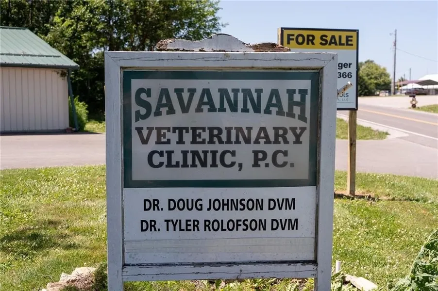 Here's an opportunity to Purchase ( at appraised value) an establish large building located in a growing area of Savannah with acreage. Right on Business loop of US 71 Highway north. Lots of Square footage for any type of business (that you desire). Paved-marked parking lot for at least 13 spaces. Open and light ; reception area )Dual entry plus dual receptions with counters and office space. You can have numerous chairs in this reception area. Also, Private large office ; three smaller private office spaces; laundry room; Storage room; Break Room ; and a gathering area for staff . The opportunities for this building is endless. Added building to the south of the main building is open but covered- garage -storage- could even rent or use as an investment opportunity. Currently a very successful Veterinary business with a history of lots of traffic. Signage is also available along highway. We are looking to create a vibrant and diverse environment for our property. Whether your considering opening a New business-beauty shop- medical facility-boutique-fix it job-accounting office- investor-or a gathering spot, take the time to look and just think of the possibilities.
