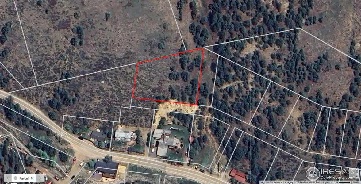 Perched on the hillside above Main St in Jamestown. No Road access. Check with Boulder County on possible usage.