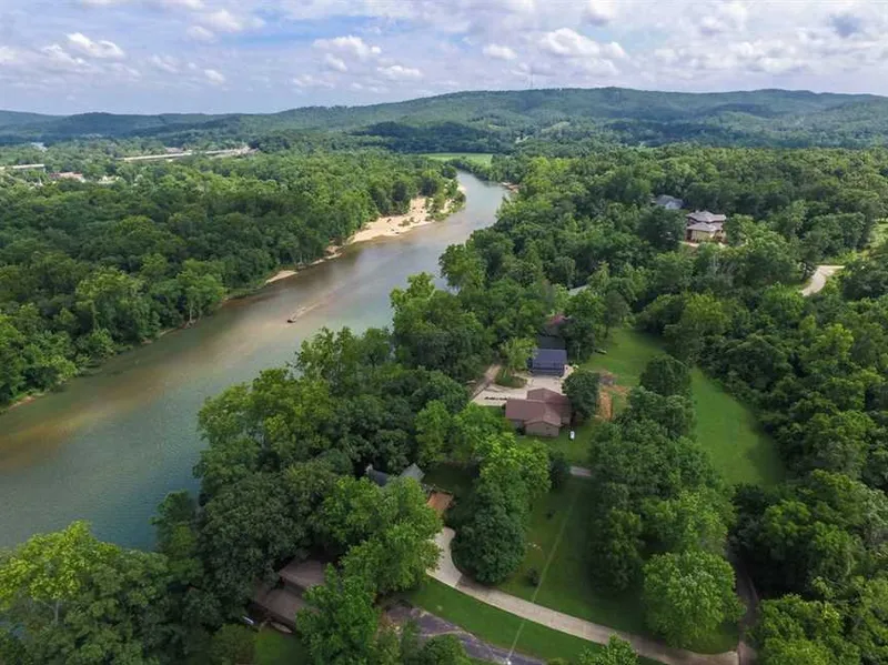 The media room features $20K (as per owner statements) surround sound system, 70" television, leather theater style seating, massive oak book cases, baby grand piano, 12ft tiled wet bar and deep stainless steel sink. Custom cabinetry and wine rack w/ igloo ice maker, dishwasher and under mount fridge over looking Current River through double french doors.