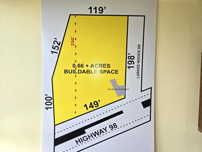 .66 Acres with 140' on Hwy. 98. Approx 250 depth to include 2050 Prever Lane (Parcel ID 22-2S-26-0000-01400-0000) Median cut, access from East and West bound lanes of Hwy. 98. Permanent billboard easement on East side. Corner of Hwy. 98 and Larker Woods Drive in Navarre. 2nd corner West of new Walmart. The seller is a licensed Florida Real Estate Broker.
