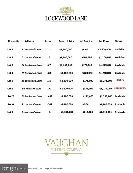 Purchase an Extraordinary Property in the Heart of the Main LineThe homes at Lockwood Lane are being built exclusively by The Vaughan Building Company. The lots are located within Radnor Township and its award-winning schools, and are close to Villanova University, regional rail, and fine restaurants. The Vaughan Building Company's newest community offers a total of 9 building lots, several of which have already sold. Homes to be built will be unique and created to reflect the pride and personality of each buyer. Construction will be completed by skilled craftsman using top-quality materials and the latest advancements in building technology. For the discerning buyer, we collaborate with the well-respected architectural firm of McIntyre-Capron or an architect of your choosing. These listings are for the land, the cost of the construction of your home would range from $500 to $600 per square foot.