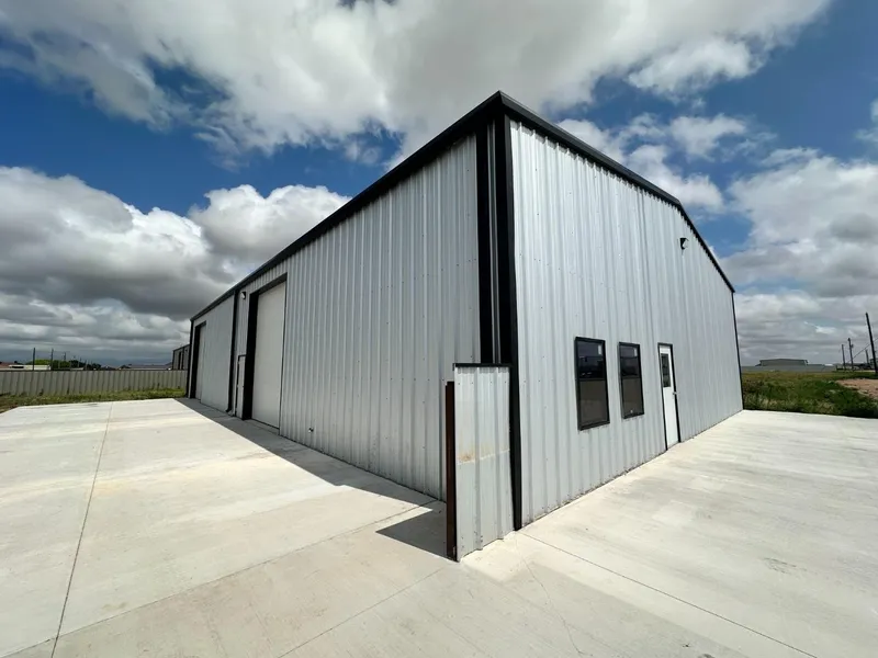 New construction insulated metal building (50ftx80ft) open span shell with bathroom and kitchenette. Can be used for automotive shop and other light industrial. Managed by owner. Two 12x16ft overhead doors. Concrete parking and access, small stack yard in rear fully fenced. On well and septic.