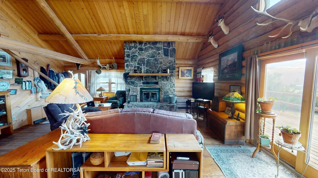 Rustic Residence Meets Opportunity - Swedish Cope Log Home with Commercial Zoning Near Yellowstone & Grand Teton National Park. Currently home to an Elk Antler Shop in the lower level (1,496 sq ft) of the home is ready for a commercial venture-zoned accordingly and ready to support your dream business. Set on .71 acres of pristine Wyoming land and framed by the awe-inspiring 2.4 million-acre Shoshone National Forest, this beautifully crafted home/business offers a rare fusion of rustic charm and unlimited potential. Built in 1989, the residence boasts a warm, authentic log design and cathedral ceiling-enhanced by a 1,315 sq ft wraparound deck perfect for soaking in the large hot tub in the mountain air or entertaining guests and clients. Whether you are envisioning a gallery, outfitter, retail boutique, or even a cozy mountain cafe, this property offers unmatched visibility and flexibility. Just 55 miles from Grand Teton National Park and a scenic drive to the world-famous Yellowstone National Park, this property is a launchpad for outdoor enthusiasts and a sanctuary for entrepreneurs looking to blend business with lifestyle. Own a piece of the Wyoming frontier where mountain serenity meets business savvy. Whether you're seeking a tranquil residence, a live/work space, or a dynamic investment, this one-of-a-kind offering delivers on all fronts.
