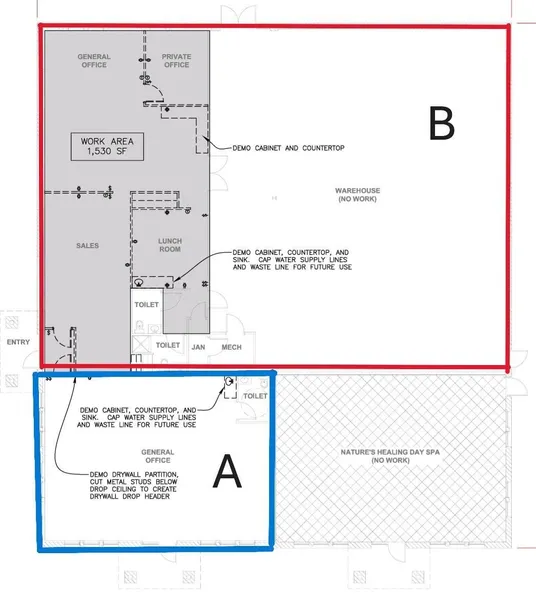 Space B is 5,100sq ft, the space has finished area for office space or retail. The entire space can be used for industrial.