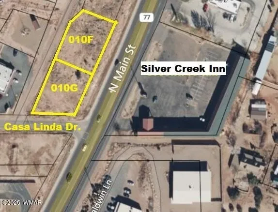 Parcel contains two lots comprising a total of .72 acres; parcels 202-23-010G and 010G Highly Visible commercial location overlooking Main Street. Located one block South of Super Walmart at the NWC of Casa Linda Dr. and Main Street (SR77)