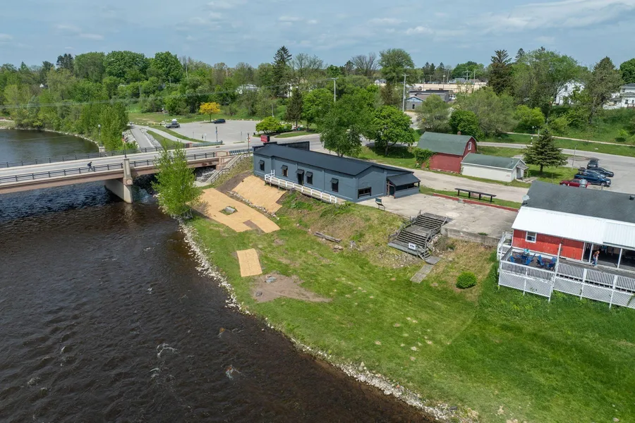 One of the prime development sites in the City of Big Rapids! This incredible location is perched on the banks of the Muskegon River, across the street from a gorgeous city park, and borders the areas favorite walking/biking trail system. Walking distance from schools, restaurants, and ballfields. The solid stone/brick structure has a brand new roof, paint, and other updates. So much potential! This spacious lot could be renovated and used for many purposes, and excellent visibility, ingress and egress, waterfront grassy areas, and parking make this a very special package indeed. Previously known as the historic location for the Big Rapids Canoe livery! Call for more information.