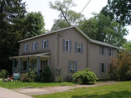 Set on .7-acre level lot w/pear & peach trees is this 2-story home. 23x19 carpeted living room w/bay window & wood stove, eat-in kitchen with plenty of cabinets, range & dishwasher, formal dining room w/wide plank floors & gas fireplace. 3 bedrooms, 2 full baths, extra apartment for guest or in-laws featuring living room w/cathedral ceilings, bedroom, full bath, fully equipped kitchen & updated electric, private entrance. New furnace & newer roof. Priced to sell at $89,000