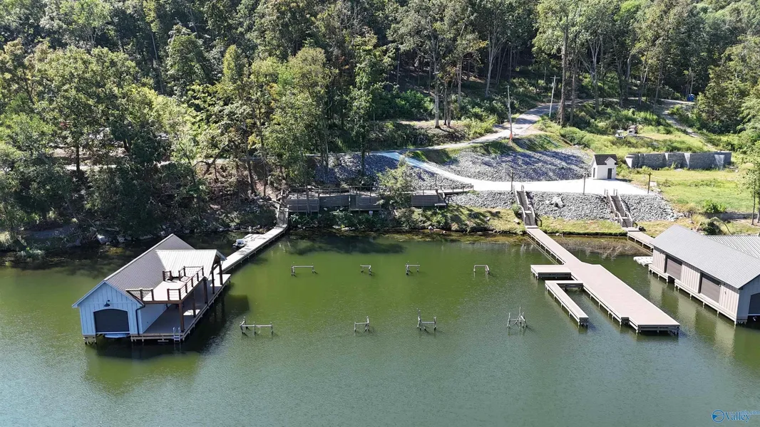 Build your dream house and boathouse in this 5 lot mini-community. 3/4 acre construction ready lot with main channel boathouse lot directly across the street that has TVA approval and survey for boathouse. The building lot has an approved 4 bedroom perc test on file. Only 20 minutes from Hampton Cove and 35 minutes from downtown Huntsville! Deep water year 'round with approximately 10' of water depth. Great views from both the building lot and waterfront lot! Boardwalk, deck, bath house and secure personal storage space under the boardwalk has been constructed in front of the waterfront lot. Water & electric available at boardwalk.