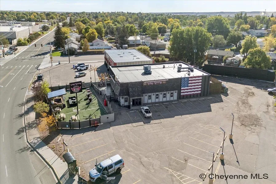 Prime commercial opportunity in a high-traffic Cheyenne location! This property has a strong history as a successful bar and entertainment venue. The building includes a full commercial kitchen, expansive bar, dance floor, and ample seating throughout. Outdoor amenities feature a large stamped-concrete patio and additional turf area complete with a second bar, perfect for events or could be easily converted into extra parking. Ideal for a restaurant, event center, or retail concept. Sale includes the building, fixtures, and land only; business not included. Contact us today for more details or to schedule a private tour!