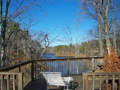 REDUCED...SOUTH END NEAR FLAT ROCK - Great year round water, partially FURNISHED, retreat on SOUTH END of Lake Wedowee! Home sits on TWO unrestricted lots outlooking nice cove. Have your OWN BOAT RAMP (additional lot previously permitted). 3bd 2ba w/fireplace, deck off master bdrm, huge deck with great views, floating dock.