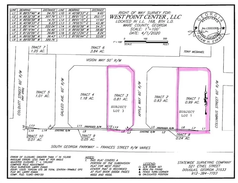 This .81 acre outparcel (Lot 3) is part of the new West Point Center development to be home to Popeye's and Dollar Tree. This lot is for sale for $325,000 and the neighboring Lot 1 is also available at $375,000. Located on the west side of Waycross right on South Georgia Parkway (Corridor Z) near Waycross College and the intersection of Corridor Z (US Hwy 82) and the Valdosta Hwy (US Hwy 84).