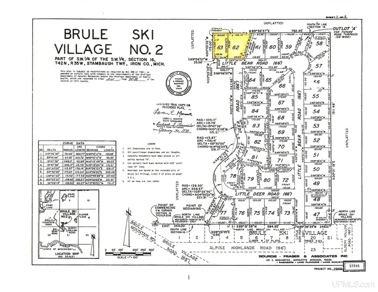 What a great opportunity to purchase Lot 62 and 63 within the Ski Brule Village in the Upper Peninsula of Michigan. Lot 62 and 63 are located within the Plat of Ski Brule in a nicely wooded, private area on Little Bear Rd. There are no visible neighbors and if you decide to build a year round or seasonal home on Little Bear Rd. the County of Iron maintains the road. The Lots are within minutes of the Resort where you can enjoy Downhill, Cross Country Skiing and Tubing. The Lodge offers dining and cocktails, cafeteria for lunch, shopping in the Bear's Den for your favorite ski equipment and clothing. If you are interested in building and using your cabin or home to generate income the rentals within the village are an excellent source to offset your investment in the Summer and Winter. The Lots are very close to Stanley, Camp, Bass and Hagerman Lakes. The lakes are ideal for all water activities. You can enjoy the Brule River Trout Stream which borders Michigan and Wisconsin with easy access a couple of miles from from Ski Brule. You can access the Snowmobile and ATV trails within a short distance from the Lots on Big Bear Rd. Also, very close to the Ottawa National Forest where you can hunt, hike or just find a cozy spot to enjoy the abundance of