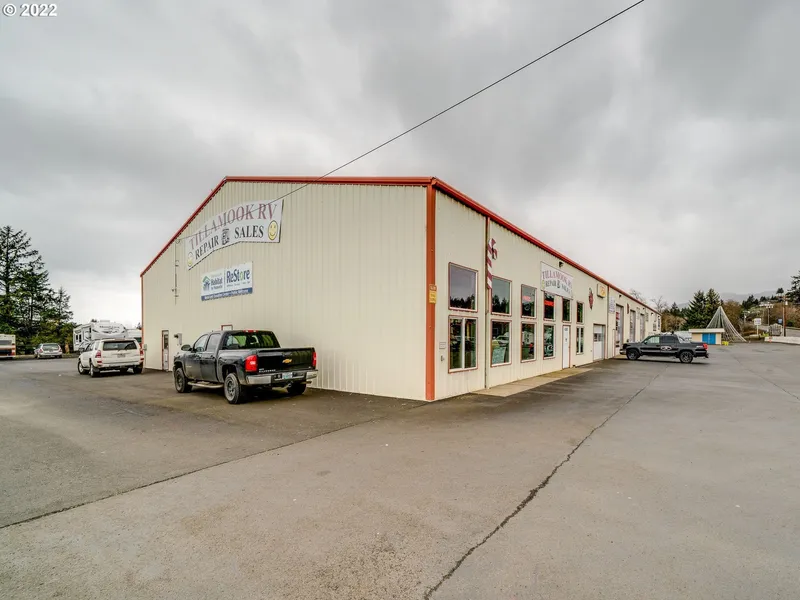 Prime Hwy 101 Frontage in Tillamook-11,250 SF Commercial Warehouse/Retail/Showroom Bldg., plus 5,000 SF Full Height Mezzanine; situated on an .88 Acre parcel plus the contiguous .34 Acre parcel also bordering Hwy 101. High grade, well built steel building w/6 drive-thru (16x14') roll up doors, private offices, ADA restrooms, work areas, heated shop, HVAC showroom/offices, security camera/night lighting, great signage and highway visibility. Contiguous to Habitat for Humanity Building, directly adjacent to Tillamook Creamery; popular local/tourist visitor stop boasting over 1.3 Million visitors annually. Public water, commercial septic along with Maintenance Agreement for shared property use. Storage Facility with 32 units also available for sale - check with Broker for details.