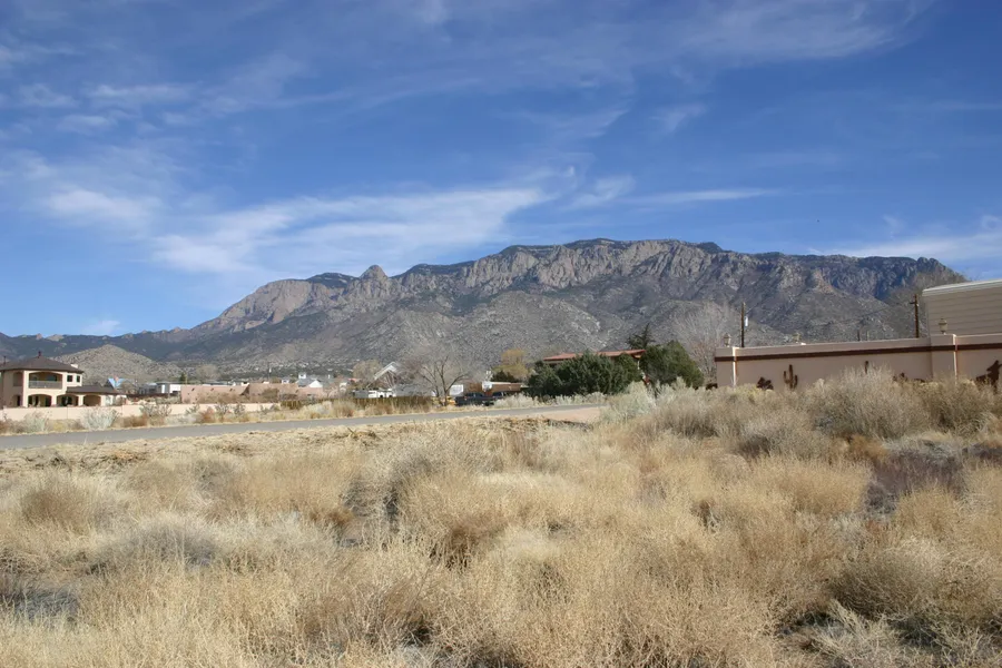 Level land, pad site in the front or north portion of the lot. Excellent mountain views, shallow well depth area (about 600'), homes adjacent so power, gas, cable tv, phone there or close by. Paved street. Served by highly rated APS schools Double Eagle, Desert Ridge, La Cueva High. Just over 2 miles to Trader Joe's and other shopping, medical and dining.