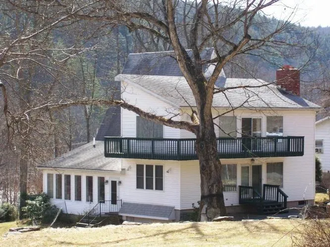 With views of the Lackawaxen River on 0.90 acre. Lots of open space & windows, high ceilings, hardwood floors, custom kitchen, stone fireplace, garage, deck & balcony. Top quality built and insulated. 3 bedrooms, 2 baths, family room, office, huge dining room and more. Enjoy the Lackawaxen River, Delaware River, mountain views and watch the American Bald Eagles soar!