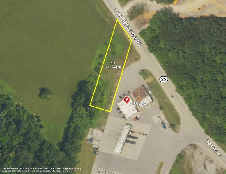 0.9 +/- acre commercial lot zoned C-2 (General Commercial) and located approximately 1/3 acre from I-65 Exit 112. Lot is adjacent to Circle K. Approximately 107 feet of road frontage along Highway 25 E. Located 25 +/- miles from Nashville, Tennessee and 30 +/- miles from Bowling Green, Kentucky.