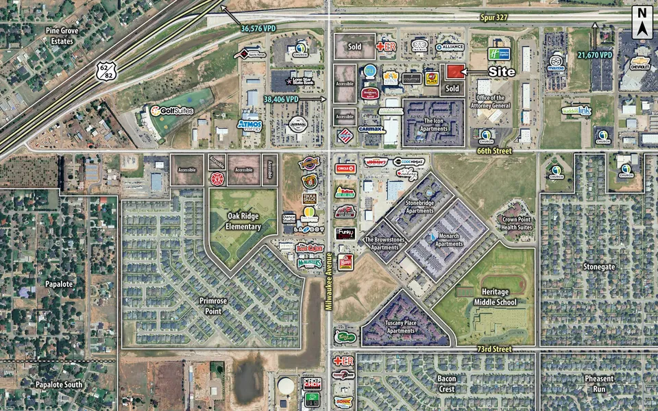 PRIME development land in the quickly developing Milwaukee corridor in the heart of the southwest Lubbock. This development is 1/2 mile south of Canyon West, the new 800,000+ square foot mixed use development with Super Target and Burlington Coat Factory as anchors. It is also approximately one mile from a new Super Walmart. The Milwaukee corridor is the primary avenue of transportation between these two high-traffic retail centers and is the newest major north-south corridor in Lubbock connecting U. S. Highway 84 (Clovis Hwy.) to FM 1585. Tracts included in this offering are suitable for retail, office, and hotel development.