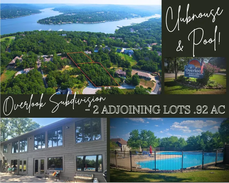 Here's your chance to own 2 back to back lots in the beautiful subdivsion of Overlook. These lots will have a nice lake view with some clearing and offer entrances on both ends.. There is community sewer and water hook ups at the line. You'll love the comunity pool on those hot summer days and the beautiful clubhouse is a great place to gather. Location is ideal as you're only a little over 3 miles off of highway 13 on a beautiful paved road. Both lots together total .92 of an acre. What a great place to build that dream home you've been planning for! Better snap this one up before someone beats you to it!