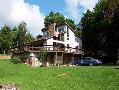 Come enjoy this gorgeous alpine contemporary home with its majestic mountain views as seen from the huge wrap-around deck. On cold wintry days sit in the living area beside the massive stone-faced fireplace as it radiates warmth to the interior of the house. Climb the beautiful stairway to the balcony overlooking the great room. The upper level features two bedrooms and a full bath with an overhead roof sky-light. The master bedroom, located on the first floor, has a full jacuzzi. On warm summer days open the balcony windows and enjoy the fresh mountain air. Feel the warm morning sun and view the outside world through the spacious, insulated Andersen windows. The kitchen features a Jenn Air Range/Grill, pantry, snack bar, and plenty of counter space. The oak kitchen cabinets match the beautiful oak floors. Go down the spiral staircase to the double garage with half bath, back-up wood furnace, central vacuum and security system. There is also an outbuilding and under-deck storage for tools and equipment and back up 5KV generator. This wonderfully landscaped dream home is just waiting for you to hunt, hike, sight-see, horseback ride and trout fish in nearby National Forest.
