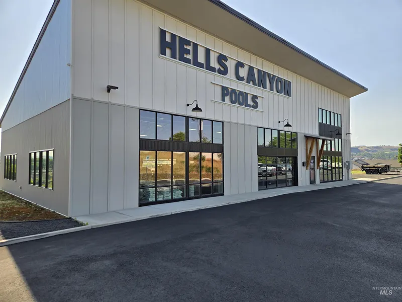 This business has outgrown their spot and needs to expand! Positioned in a prime location overlooking the Snake River, this newly constructed commercial building (2019) offers exceptional flexibility for a variety of business uses. The main level spans over 4,000 sq. ft. and features a modern industrial design with three glass panel roll-up doors—one facing west and two opening to the east, creating seamless indoor-outdoor flow. Upstairs, a partial second level includes a private office or meeting room with direct access to a river-view balcony—perfect for a serene work retreat or client meetings. The main floor includes two bathrooms, each equipped with changing areas, a shower, double sinks, and a private toilet stall, providing added functionality for staff or clients.