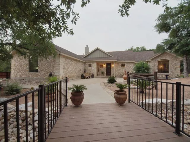 Ed Wohlrab built custom stone home on corner lot. Private retreat 7' rock wall. Three power gates: 14ft auto gate with key pad & extra wide drive. 20X15 insulated shed with metal roof, concrete floor. 700 sft concrete patio. Stone fire pit. Wrought iron fencing front and sides. Stained concrete floors. Granite in gourmet kitchen. Black appliances. Drop lighting at breakfast bar. Stone backsplash. Pantry with window. Arches, shaker doors, transom windows, two inch blinds. Wood-burning fireplace in family room. Game room/media room.