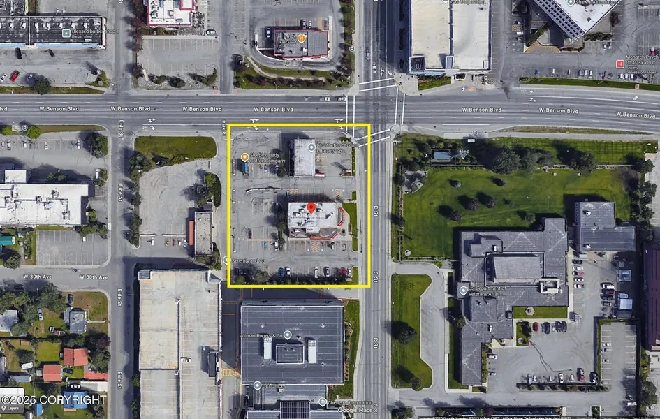 Rare commercial intersection located on the correct side in Midtown Anchorage. High traffice counts. Prime location for new development. This offering consists of six parcels (43,237sf), with two buildings (3,540sf, 6,614sf). See Sale Package. Please do not bother the tenants, all showings to be scheduled with listing licensee.