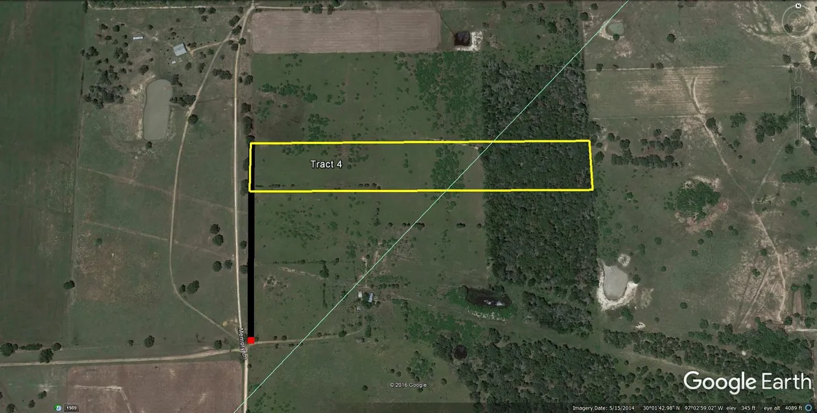 From La Grange, take Hwy 77 N for approx. 7 miles, then turn left onto FM 153. Drive for approx. 11 miles (through Winchester), then turn right onto Wormley Lane. Roadway easement begins where county maintained road ends, due north. From Austin, take HWY 71E toward Bastrop, continue on HWY 71E through Bastrop towards Smithville, take the TX-95 S/TX-230 Loop ramp to Smithville/Flatonia. Follow signs for FM 153, and continue on FM 153 for 9 miles until you see Wormley Lane on the left.