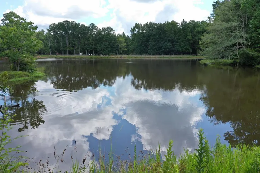 You might have to push a little bit...but R-2 zoning says we can do 1/2 acre building lots with public/community water source and from my measurements it appears you can get 4 lots on this property if you push a little road in there and double load. (See Drawing) Some of that would be water front. Property has Fuquay and Tifton Soils up front so should be no limitations there.....the closer you get to the water you might have more work done with your septic system set up. You might could push for 4 lots.....settle for 3 lots....definitely 2 lots.....secure county approval and check with city for utility letter of availability. Big trees sloping towards pond....there appears to have been an old MH on property....slab is there and some plumbing and possibly remnants of an old septic system. Very Fishy looking...have not completed my due diligence and marketing work regarding the fish in the pond. Working on securing survey. Property goes over further to the north than mowed.