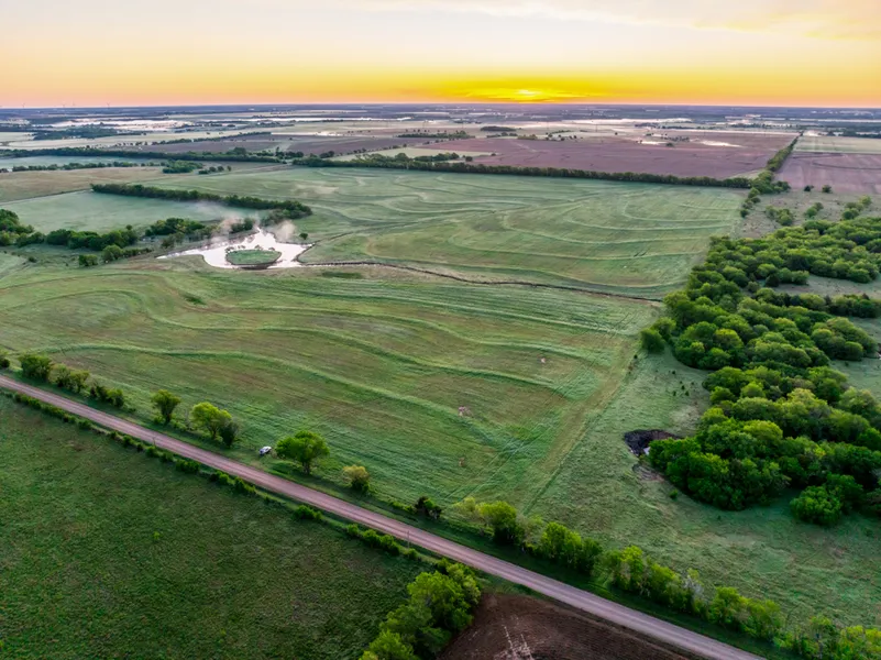 Power is located on Rock Road. The farm's excellent topography will give future owners the chance to build on top of the hill and provide them with an excellent location for a pond to be constructed. The property has a stunning east view overlooking the entire farm. A spring morning with a coffee in hand, on the back porch to hear the neighborhood wake up with turkeys gobbling, pheasants cackling, and the lone honk of a goose. The farm has a good perimeter fence on the south and west sides and a nice gated entrance. With a little grass seed and an additional fence, one could have enough ground for a barn and livestock. Additional acres are available. To answer questions or schedule a time to see the property, please call listing agent Tyler Heil at (913) 207-4541.
