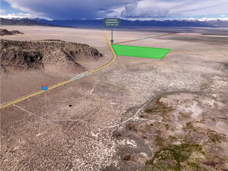 SELLER FINANCING with 0% INTEREST ($25,000 downpayment). Comparable listings of 35+ acre lots along HWY in nearby Salida are going for $300-500k, this is a ONE-OF-A-KIND investment opportunity adjacent to major interstate highway 285, that promises privacy and undisturbed 360 panoramic views of Sangre de Cristo and San Juan Mountain Ranges featuring prominent 14er peaks. READY-TO-DEVELOP: Saguache County's lack of building codes means you can build your dream home without restrictions. Plus, with this lot acreage you are allowed the flexibility to build up to 3 homes PLUS an Accessory Dwelling Unit (ADU) for each home. Complete with an easement though County Road AA, an APPROVED DRIVEWAY ACCESS PERMIT, and a detailed land survey, this parcel offers a seamless entry point into the possibilities of rural living.
